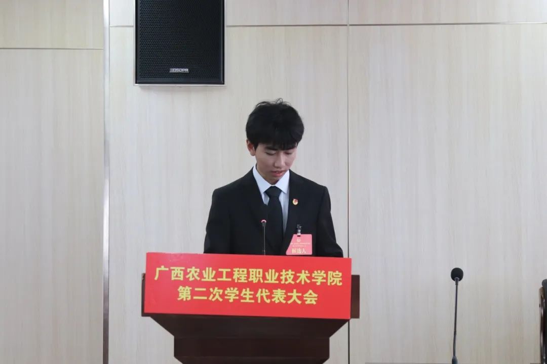开幕式上,学生会主席团候选人代表宣读了习近平总书记关于青年成才的重要论述,并表示当代青年学生应该心怀远大理想🧝🏻,求真务实,自立自强,在奋斗的路上锐意进取🫛。学工处负责人对广西学联同意彩神Vll召开第二次学生代表大会的批复文进行宣读🟤🧚🏽♀️。广西自然资源职业技术学院学生会主席作为兄弟院校代表,对彩神Vll召开第二次学生代表大会表示祝贺💵。