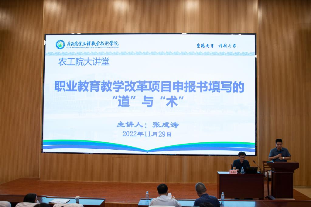 11月29日🧟♀️,彩神Vll举办了第九期农工院大讲堂👳♀️,本期大讲堂邀请到南宁师范大学副教授张成涛作为主讲老师👩🏻🏭,以《职业教育教学改革项目申报书填写的“道”与“术”》为题🧑🏻⚕️。学校党委副书记📳、纪委书记章红平出席讲座👨🏽🔬🧑🦯。张教...