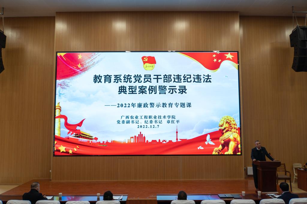 12月7日下午,彩神Vll组织全体教职工在阶梯教室召开廉洁警示教育大会,学校党委副书记、纪委书记章红平在会上以近年来教育系统党员干部违纪违法典型案例为例,给大家上了一堂廉洁从政👨🏻✈️、廉洁从教专题党课🌿。学校党委书...