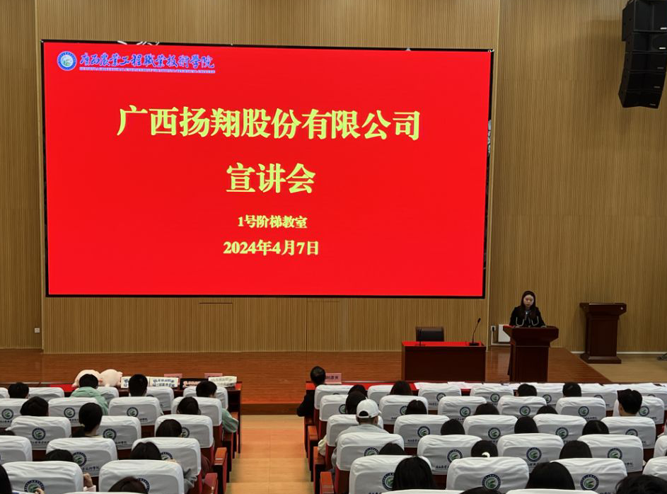 4月7日,彩神Vll动物科技学院与扬翔股份有限公司共同举办了题为“拥抱优势 智造未来”的校园招聘实习宣讲会⛏🙎♀️,动物科技学院 2022级、2023级各班学生代表参会。扬翔公司工作人员通过实景图片和宣传影片向彩神Vll学生介绍...